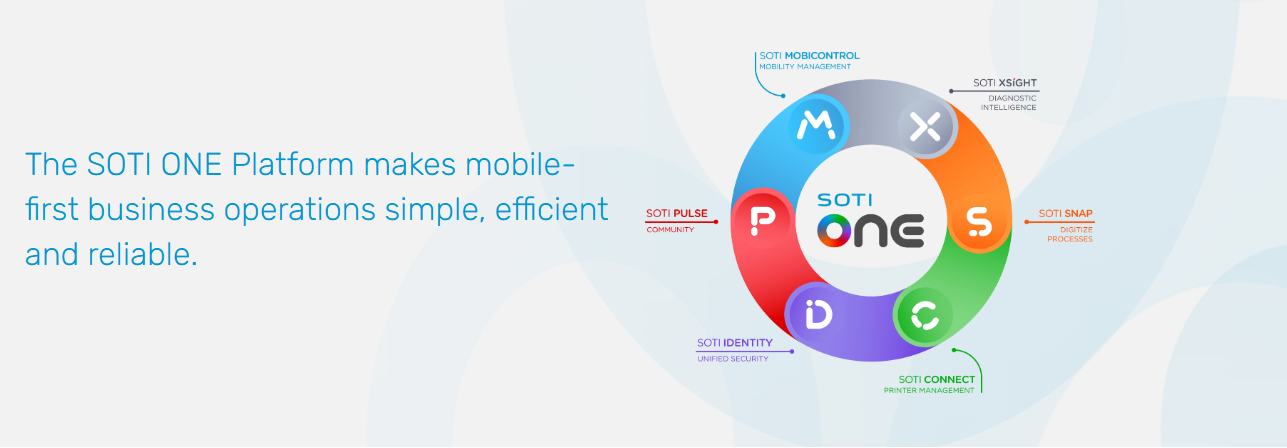 The SOTI ONE Platform is an innovative, integrated management solution that maximizes the ROI of your business-critical mobile devices and printers. It reduces the cost, complexity and downtime of your mobile operations and delivers actionable insights to help you make data-driven decisions.