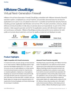 Cloud Security / Virtualized NGFW Hillstone CloudEdge Solution Comprehensive Cloud Infrastructure Protection for Virtualized Workloads Hillstone CloudEdge is a virtual next-generation firewall (vNGFW) for public cloud and telco cloud platforms. With a rich set of features and wide compatibility with popular cloud platforms including AWS, Microsoft Azure, and Alibaba Cloud, CloudEdge can be easily deployed […]